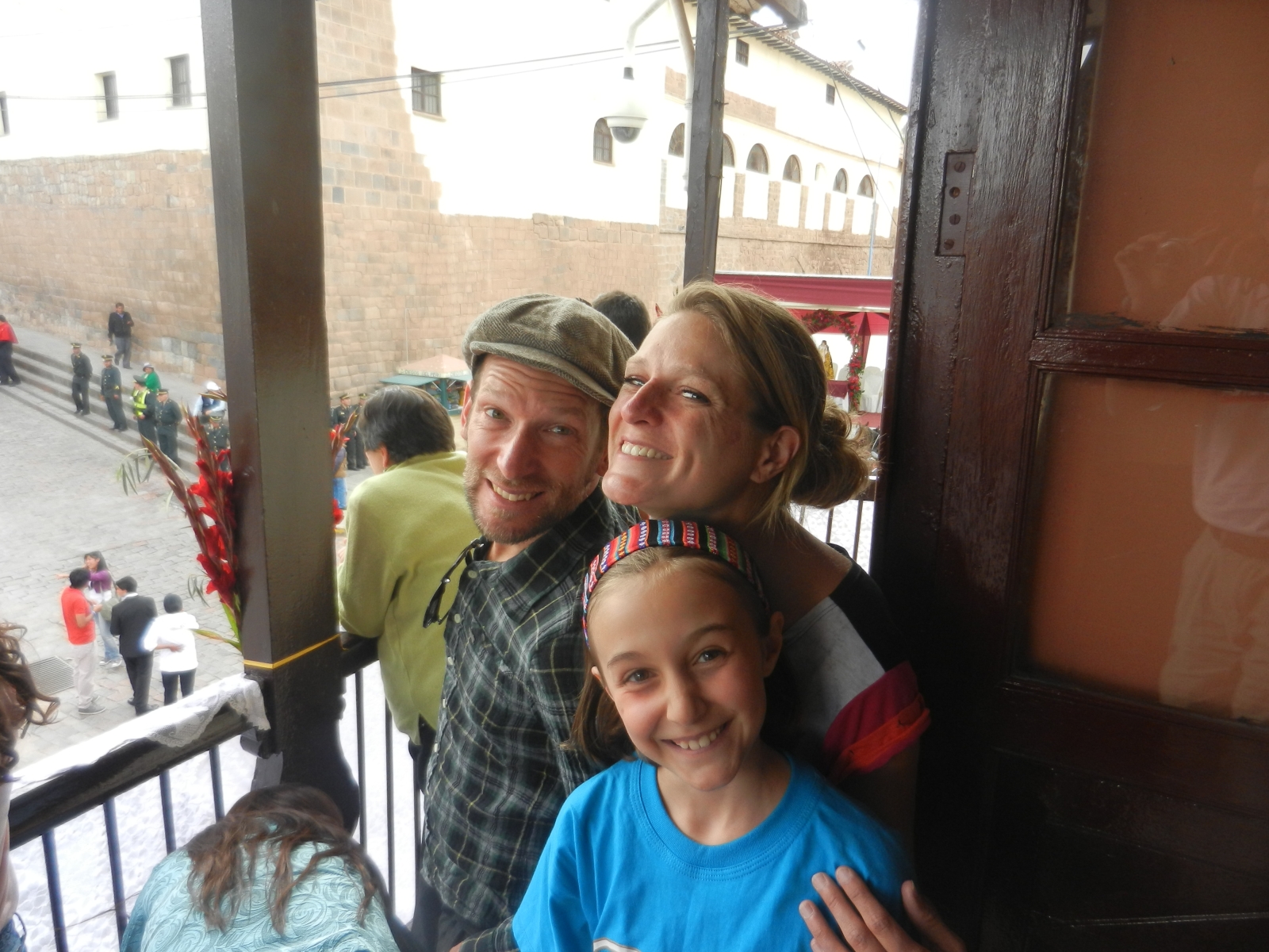 Et quelle expérience ce fut. Le jour même, en matinée, nous avions décidé visiter quelques sites Incas en banlieue de Cusco. À notre retour en ville vers midi, l’animation dans les rues était à son comble et la foule passablement dense, tellement qu’il fallait se frayer un passage vers notre hôtel. La porte de notre chambre était ouverte et toute la famille et les amis (au moins 25 personnes) de Sergio étaient sur « notre » balcon attendant fiévreusement le passage de la procession. Un peu surpris par cette sympathique intrusion, nous nous sommes joints de bonne grâce aux festivités en lançant à notre tour des pétales de fleur rouge sur l’immense crucifix qui passait tout près. Je vous invite à regarder les photos pour tenter de saisir l’intensité de ce moment qui demeure difficile à traduire par des écrits.