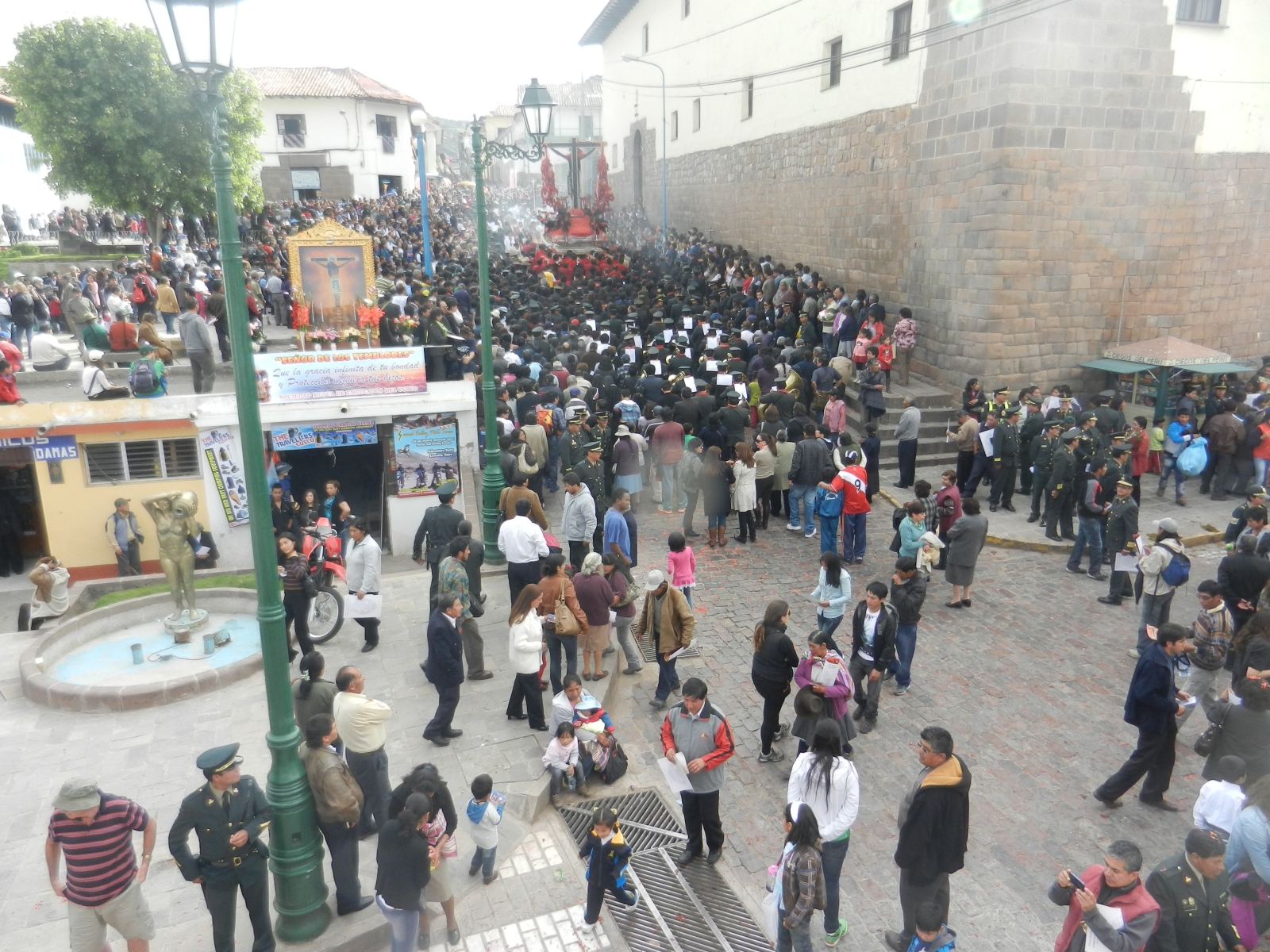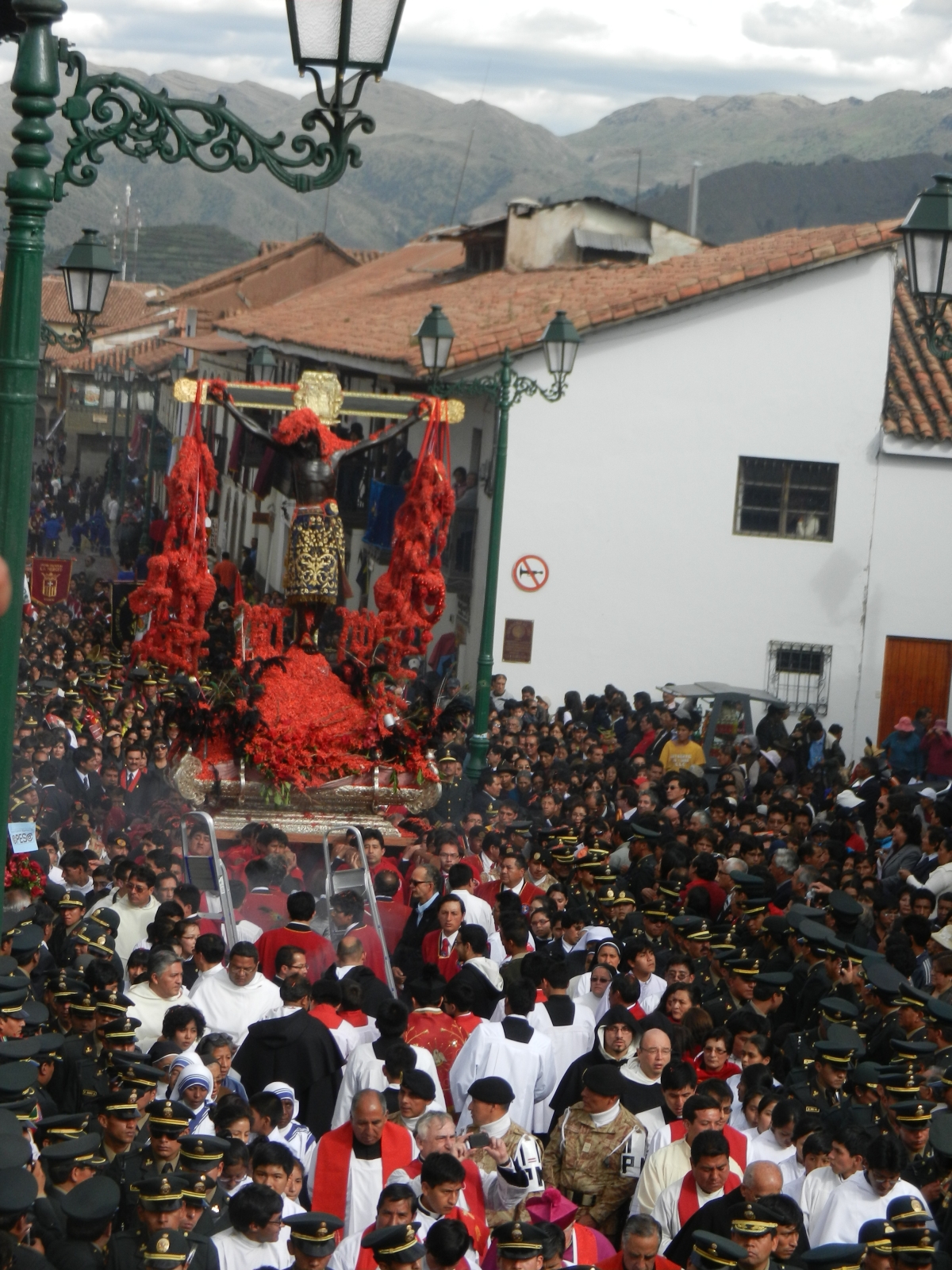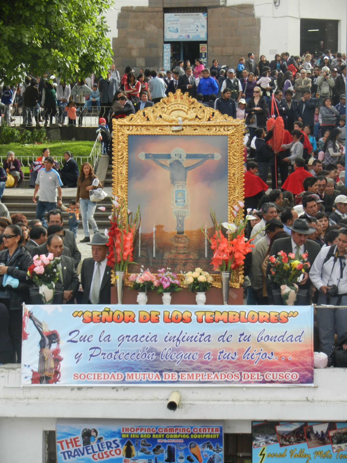 Le lundi de la semaine pascale ou lundi saint (lendemain du dimanche des Rameaux), grande procession du Señor de los Temblores, le « seigneur des Séismes », protecteur de Cuzco. Selon la légende, une peinture du Christ stoppa un violent séisme en 1650. Depuis, les cusquenos rendent un culte à l’image du « Taitacha Temblores ».