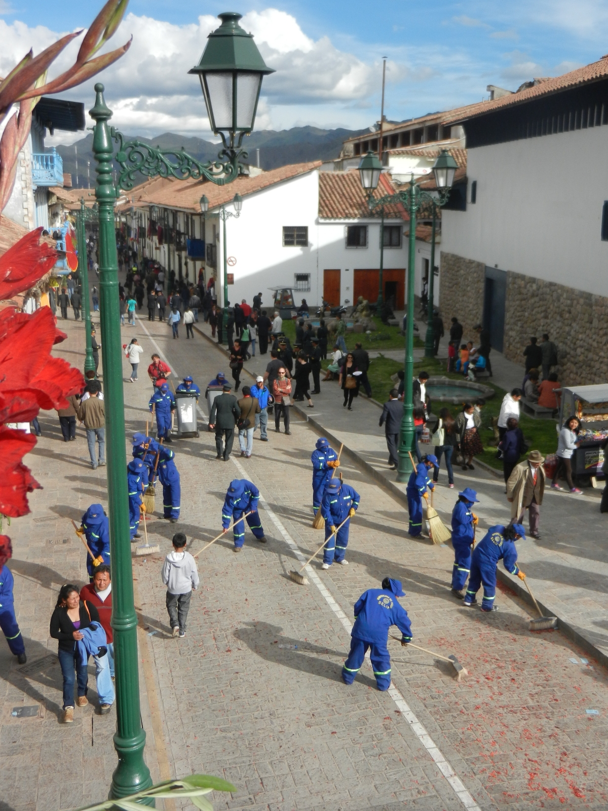 Sergio, le propriétaire de notre hôtel à Cusco nous avaient prévenu que lundi après-midi, une fête très importante se déroulerait en ville, la fête du Señor de Los Tremblores. Nous étions loin de nous douter de son ampleur surtout que le balcon de notre chambre d’hôtel allait se révéler le meilleur lieu pour admirer la procession qui est le clou de la célébration. Quelle incroyable coïncidence. Voici un petit résumé piqué sur internet de cette fête aussi étrange qu’animée :