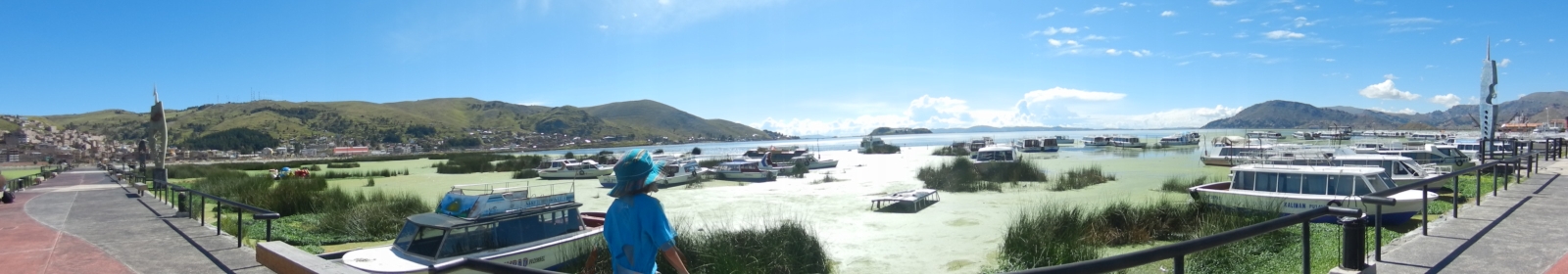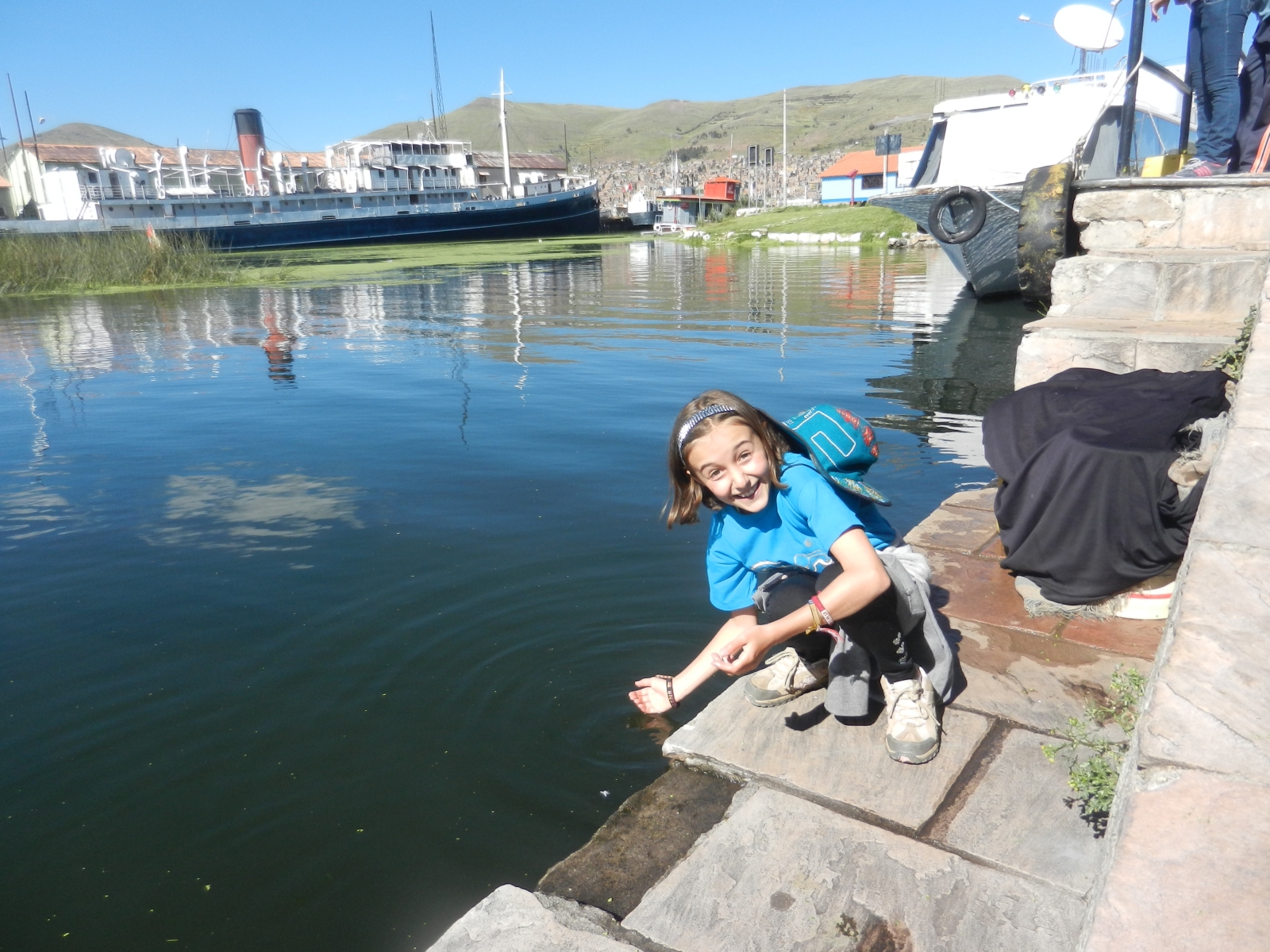Et bien le lac existe vraiment et il est pas mal loin de ressembler à ce que son nom inspire lorsqu’on l’entend pour la première fois. Il s’agit du lac le plus haut perché au monde, soit à près de 4000 mètres. À cette altitude, la luminosité est unique, permettant ainsi à l’eau et au ciel de se parer de couleurs éblouissantes, particulièrement aux aurores et couchés de soleil. À notre arrivée à Puno, une ville sans histoire en bordure du lac, Yasmina et moi avons tôt fait de se tremper la main dans l’eau pour enfin exorciser le doute qui nous rongeaient sur son existence depuis tant d’années. Nous avons ensuite acheté nos billets afin de visiter le lac et 3 de ses Iles. Il s’agit en fait d’une croisière qui inclut une nuit sur l’une de ces Iles, dans une maison privée ou habitent des Indiens Quechua. Un genre de bed & breakfast, version locale.