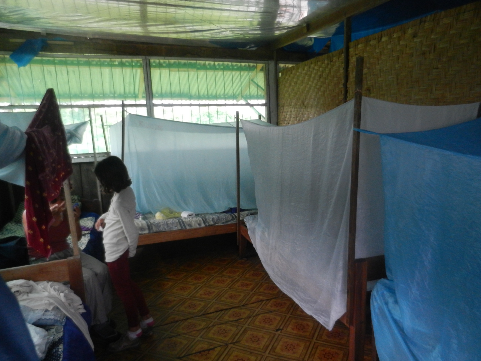 Et c’est justement là que cette damnée bière est revenue me hanter. À très exactement 3h10 de la nuit, au beau milieu de la symphonie nocturne, je me suis réveillé en maudissant sourdement cette vessie vieillissante, incapable de contenir quelques ml de houblon. Allais-je devoir quitter mon moustiquaires, enfiler mes baskets (pas les gougounes) pour éviter de piler sur je ne sais quels cloportes, araignées ou mille-pattes ? Devrai-je ensuite, ouvrir la porte de notre modeste chambre aux murs branlants et percés d’inquiétantes fissures pour marcher sur la passerelle extérieure où m’attendraient des milliards de moustiques affamés ? Sur cette passerelle construite sur pilotis comme le reste des installations et qui surplombe une végétation humide, mystérieuse et peuplée par des tas de bestioles pour qui la nuit, c’est la rhumba ! Les toilettes sont situées au bout de celle-ci, à plus de 25 mètres de la chambre. Chouette perspective…