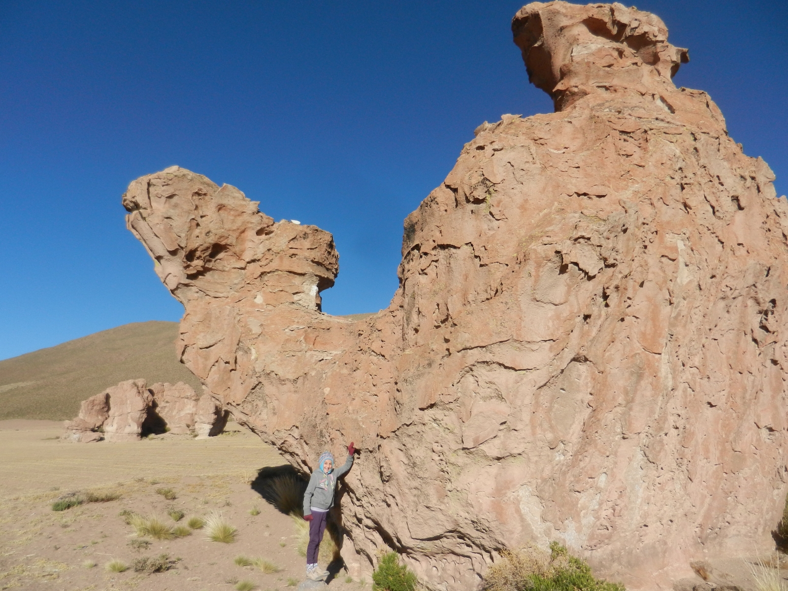 Avec le recul et après avoir classé sommairement les photos de ces 4 jours, je peux affirmer qu’il s’agit pour moi de la plus belle aventure du voyage. Plus que le Machu Picchu, ce qui n’est pas rien ! Tenter de décrire par des mots la beauté des paysages parcourus serait aussi futiles qu’utopique. Il faut le voir de ses propres yeux et s’arrêter pour apprécier le silence total et quasi oppressant qui caractérise la plupart des sites visités. Il n’est pas difficile pour moi d’affirmer avoir vu les plus beaux panoramas de ma vie. À chaque journée pleine de lieux inoubliables, succédaient le lendemain encore d’autres paysages encore plus impressionnants pour se terminer glorieusement avec la visite du Salar d’Uyuni. Nous publierons bientôt des photos qui se passent de commentaires. Yasmina s’est follement amusée à grimper des rochers sculptés par le vent et l’érosion , à marcher dans un cimetière de lamas , à se baigner dans une source thermale, à découvrir des geysers de boue brûlantes aux effluves de soufre et surtout, surtout, à prendre des photos truquées dans la plaine de sel. Des souvenirs mémorables pour toute la famille et je vous enjoins tous et toutes qui lisez ces lignes à tenter l’expérience un jour si vous le pouvez. Vous ne le regretterez jamais. Merci à Jesus et Susana, nos deux amis qui sont aussi responsables du succès de cette expédition qui restera à jamais gravée dans nos cœurs comme un moment très fort du voyage. 1200 km de pur bonheur !